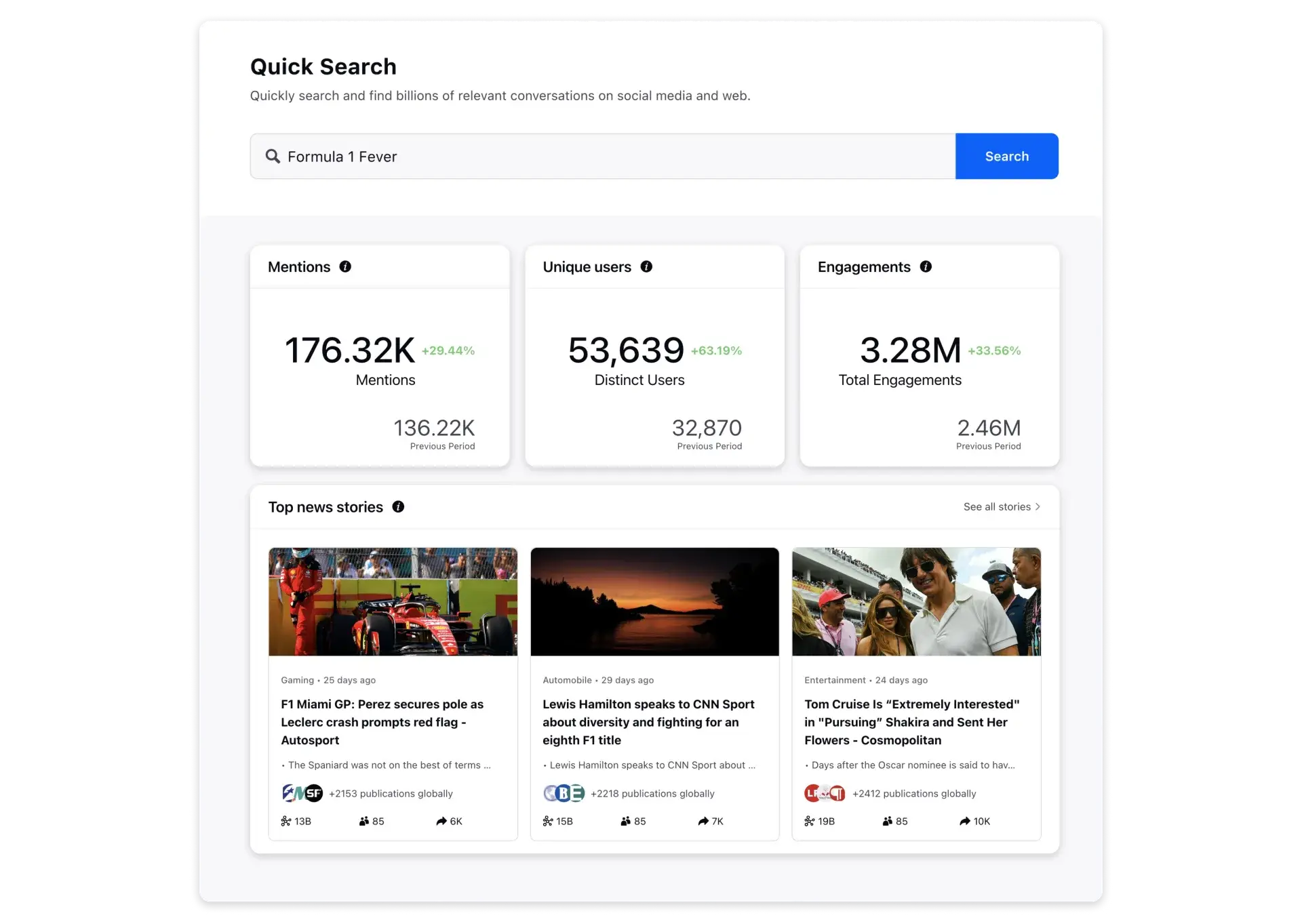 Access reports on your brand visibility, media coverage, sentiment analysis and brand reputation instantly to improve your brand health.